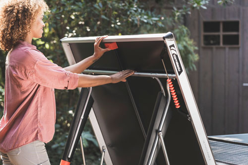 COMPACT TECHNOLOGY®, ki ga je zasnoval Cornilleau, zmanjšuje tveganje, da bo miza izgubila ravnotežje. Otrokom preprečuje tudi, da bi se skrili/postavili med ploščama v položaju za shranjevanje in olajša odpiranje in zapiranje vaše mize. Ko je miza zložena, ima dvojno prednost, da zavzame manj prostora od običajnih mizi in je lažja za premikanje.